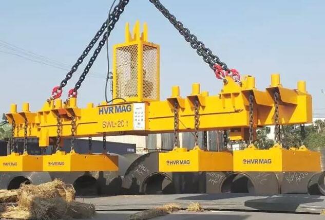 鋼板吊裝16臺電永磁鐵聯(lián)吊